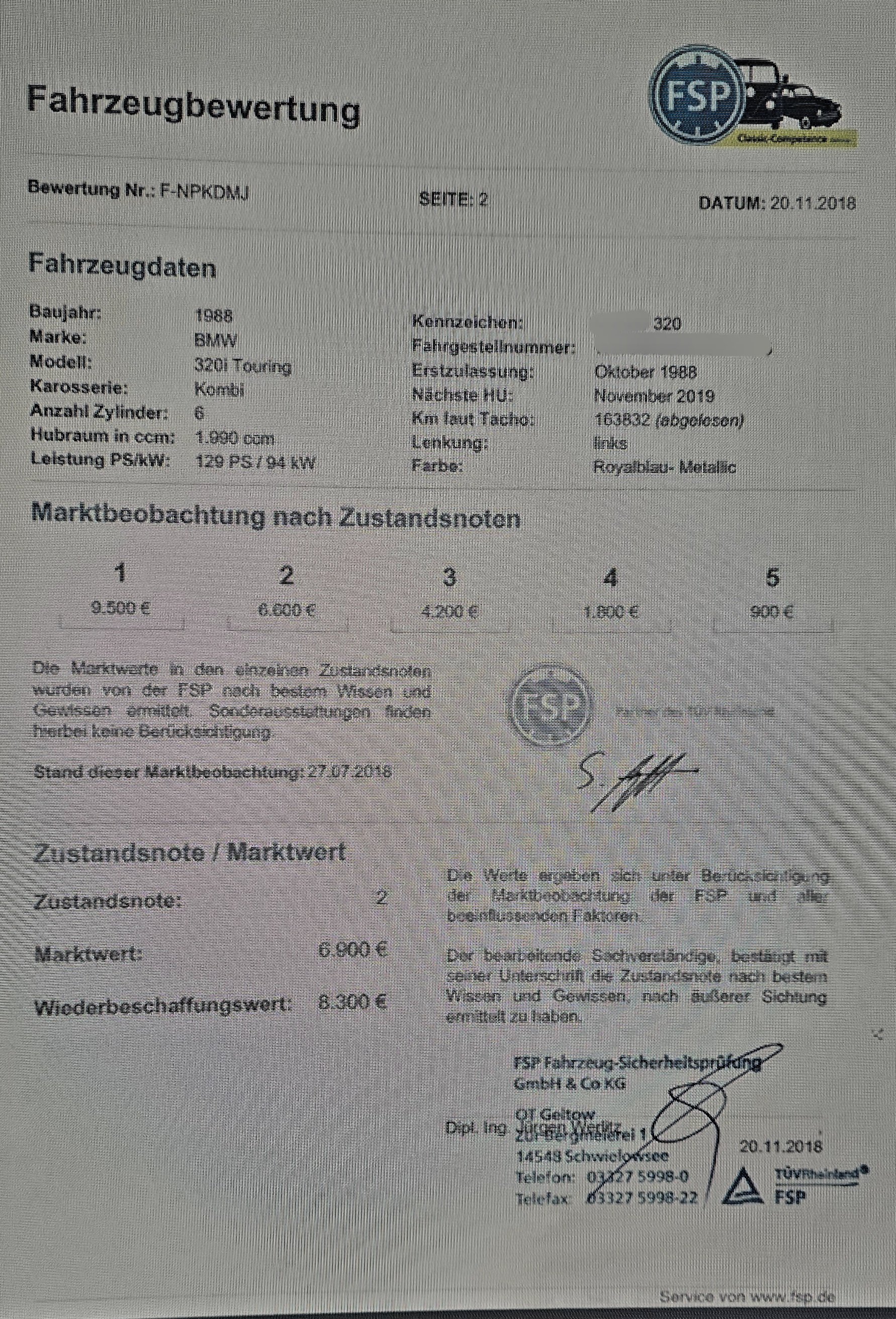 320i touring - royalblau - H-Kennzeichen - Leder-Sportsitze - unverbastelt - Bj. 1988 - echte 185 TKM