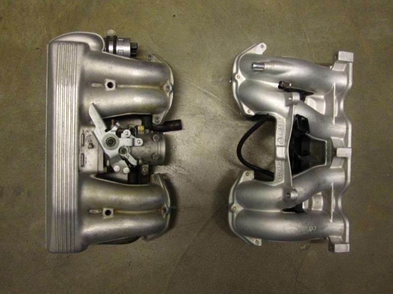 Ansaugbrücke vor dem Zusammenbau. Der untere Teil bereits ist mit einem tollen Reiniger gereinigt, der obere Teil noch nicht. Wollte den Effekt mal ausprobieren.