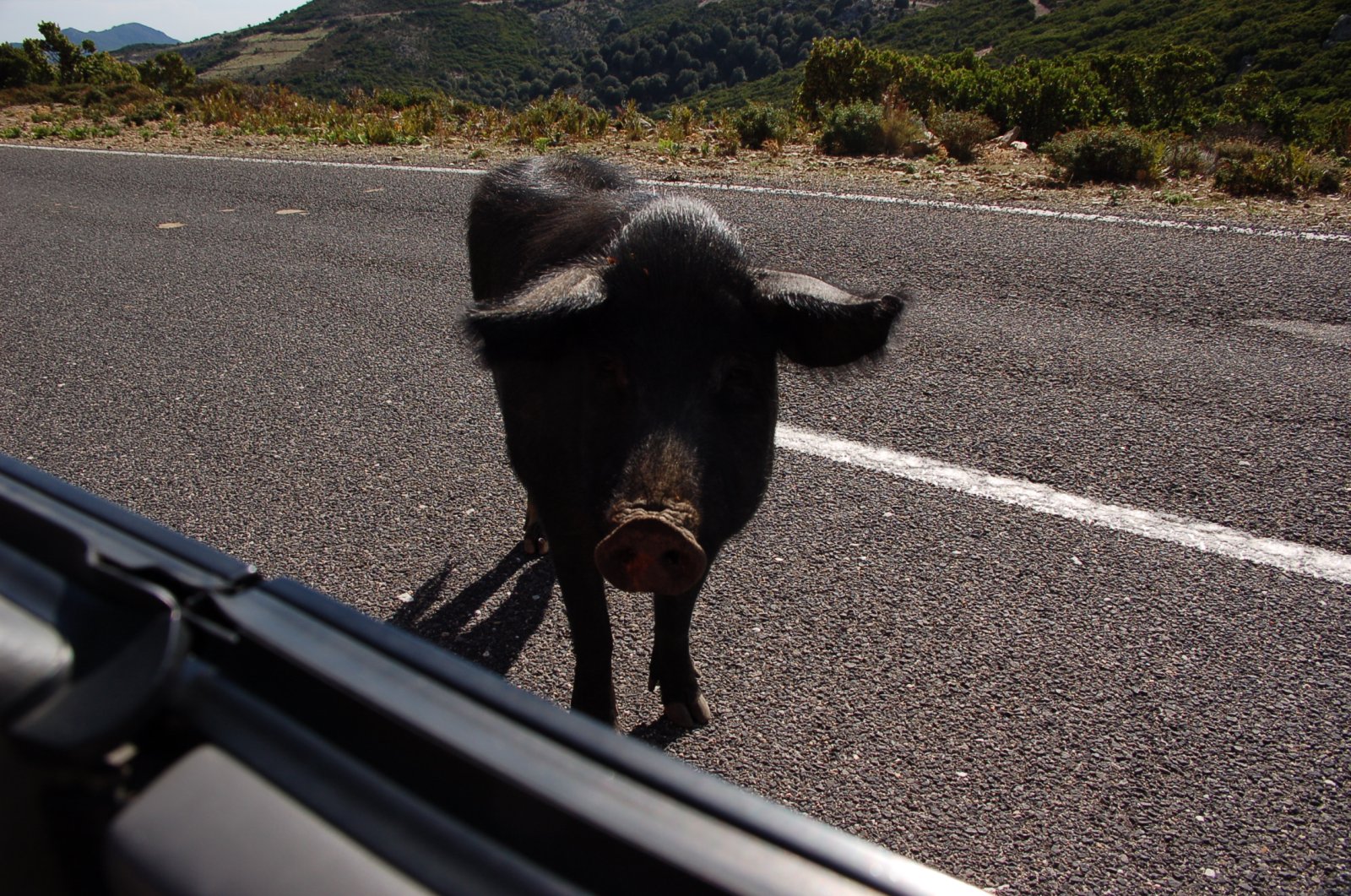 Sardinien - in den 'highlands' - zirka 1000 Meter hoch - das Vieh läuft frei herum und findet sich regelmäßig auf der Straße ein. Vorsicht ist geboten!