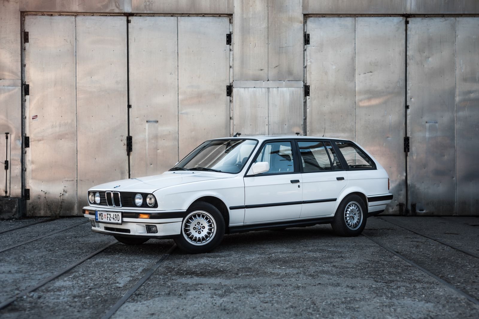 Mein 89' 325i touring. Hier noch mit gullydeckeln, jetzt mit kreuzspeichen. Abgelichtet in einem industriegebiet zur hozverarbeitung.