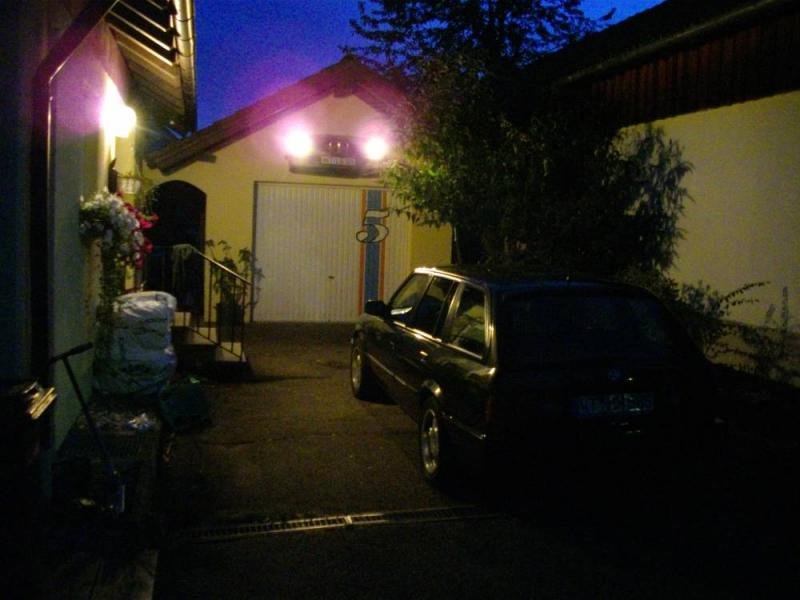 Nochmal die Hofbeleuchtung - hier noch mit Frauchens altem 318iT (91er mit Klima). Haben wir abgeschossen: Meine Frau verträgt die Klima nicht, und ich vertrage M40 nicht.... *fg*