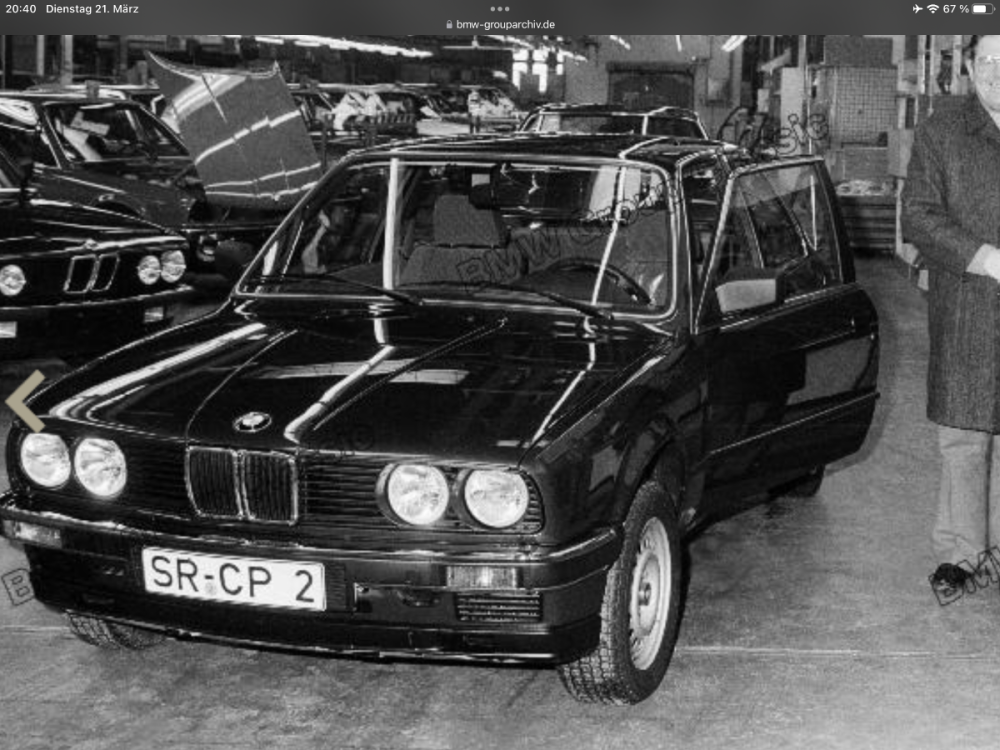 @MartinE30Dieses Foto aus dem BMW Group Archiv soll laut Beschreibung einen 325e zeigen, der Erste mit Katalysator aus dem Werk Dingolfing, vom Februar 1985. Die früheste Preisliste mit dem 325e ist von 01.1984 lt. dem BMW Group Archiv. Ein Repair Manual von 12.1983 für den US 325e ist auch im Archiv hinterlegt. Hier ein aktuell in Kleinanzeigen angebotenes Exemplar aus 1985 in der schönen Farbe Pusztagrün. https://www.kleinanzeigen.de/s-anzeige/bmw-e30-325e-1-hand-ez-05-1985-tuev-03-2027/3241781862-216-183184 Mal gefällt mir