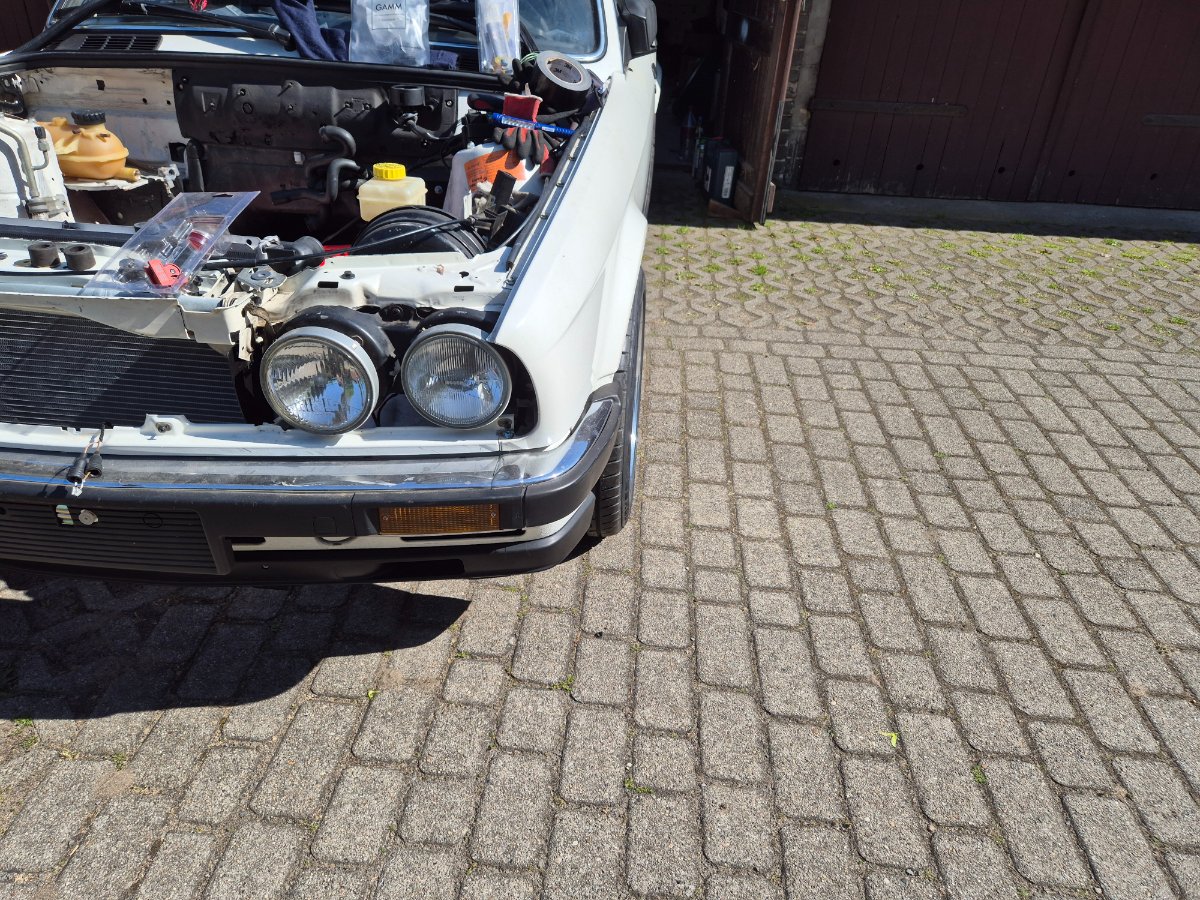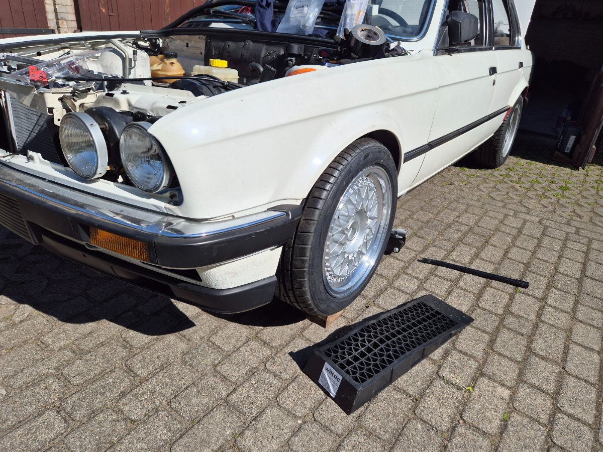 Sascha R. Geschrieben: 18. April Autor #152 Meldung Teilen Geschrieben: 18. April Ich hab wieder etwas weitergemacht, arbeite zZ am Kühlerpaket vorn. Wird ganz schön "voll" vorne: - E34 525i Facelift Elektrolüfter (passt saugend in die Frontmaske) - E30 Klimakondensator: muss die Aufnahme für den Lüfter versetzen/modifizieren, wobei die grundlegend ein vergleichbares Schema haben - E28 535i Wasserkühler: sollte genügen, speziell weil erstmal nur der kleine M60 reinkommt mit früh öffnendem Thermostat - Kühler für die Servo, einfaches Chinateil mit Kühlrippen an einigen "Schlingen" - daneben dann Motorölkühler made in China mit Thermostat und evtl noch Lüfter (dann aber Sauglüfter) Also quasi 3 Reihen Kühler.. hoffe das geht so auf, wobei Wasserkühler hbd Ölkühler sich ja gegenseitig unterstützen im Grunde. Gestern mal die Maxilite Super RS raufgepackt: 7x16 mit 195/50R16 und 8x16 mit 225/45R16. Sieht irgendwie erwachsen aus, mehr nach OEM Plus als nach Tuning. Ansonsten sagt doch mal was zum Schwallblech, funktioniert das so? Zu hoch oder zu weit weg von der Ölpumpe? Zitieren Link zu diesem Kommentar Auf anderen Seiten teilen Weitere Optionen zum teilen...