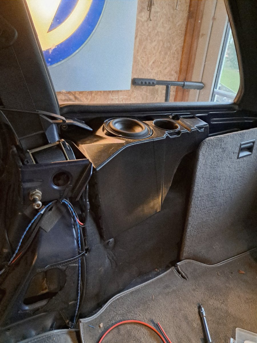 Beliebter Beitrag Bhavi Geschrieben: 23. Juni Autor Beliebter Beitrag #20 Meldung Teilen Geschrieben: 23. Juni Habe für den Dayton- und Visaton-Treiber jeweils die Herstellerangaben der TS-Parameter verwendet. Zum Messen fehlt mir das Equipment und vor allem das KnowHow. Habe auch mal gelesen, dass sich Woofer erstmal einspielen müssen, bis sie die Zielwerte erreichen. WinISD scheint ja auch eher ein Schätzeisen zu sein, bei dem im Halbraum simuliert wird. Es gibt zwar Methoden CabinGain darzustellen, was aber wohl recht ungenau sein soll. Für einen A/B-Vergleich des gleichen Treibers bei unterschiedlichen Gehäusetypen- und -Ausführungen finde ich es aber gut. Vielleicht gehe ich die 5Hz im nächsten Winter nochmal an, wobei ich keine Möglichkeit für 1l mehr Volumen des Gehäuses gefunden habe, die links und rechts im Fahrzeug funktioniert. Müsste dann asymmetrisch werden. Links müssen Verbandkasten und Warndreieck noch unter das Gehäuse passen, rechts nimmt das Radhaus wegen Tankeinfüllung viel Platz weg. Habe auch mal alternativ nach Treibern mit mehr Membranfläche gesucht und dabei an 6x4 Zoll gedacht. Das Format als Woofer habe ich aber noch nicht gesehen. Die Purifi kosten mal eben das 15fache? Die Einbautiefe wird im E30 Touring aber nicht passen. Auf der rechten Seite musste ich schon ein Stück des Dämmmaterials über dem Blech wegnehmen, um den Dayton unterzubringen. Hier mal ein Bild der ersten groben Versuche zur Positionierung unter der Verkleidung. In der späteren Version kam der Treiber noch ein Stück hoch. Zitieren Link zu diesem Kommentar Auf anderen Seiten teilen Weitere Optionen zum teilen...